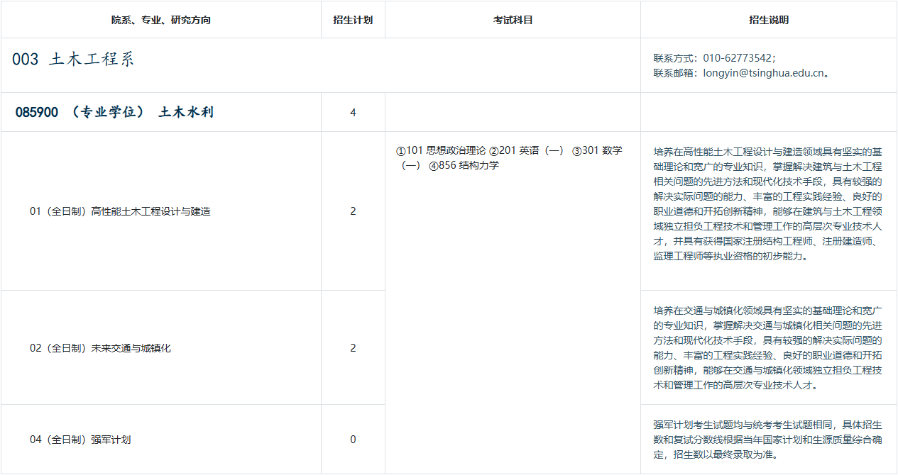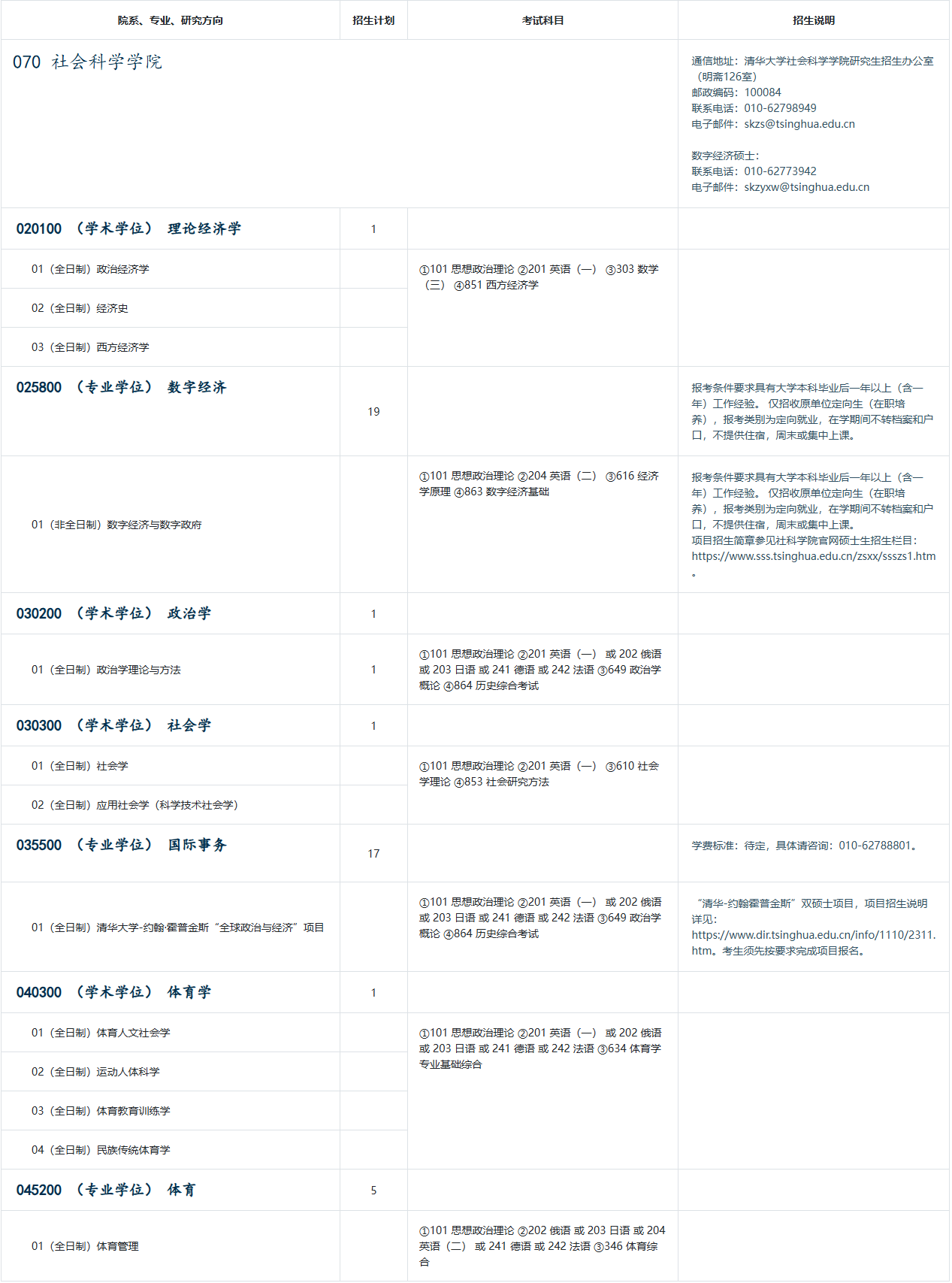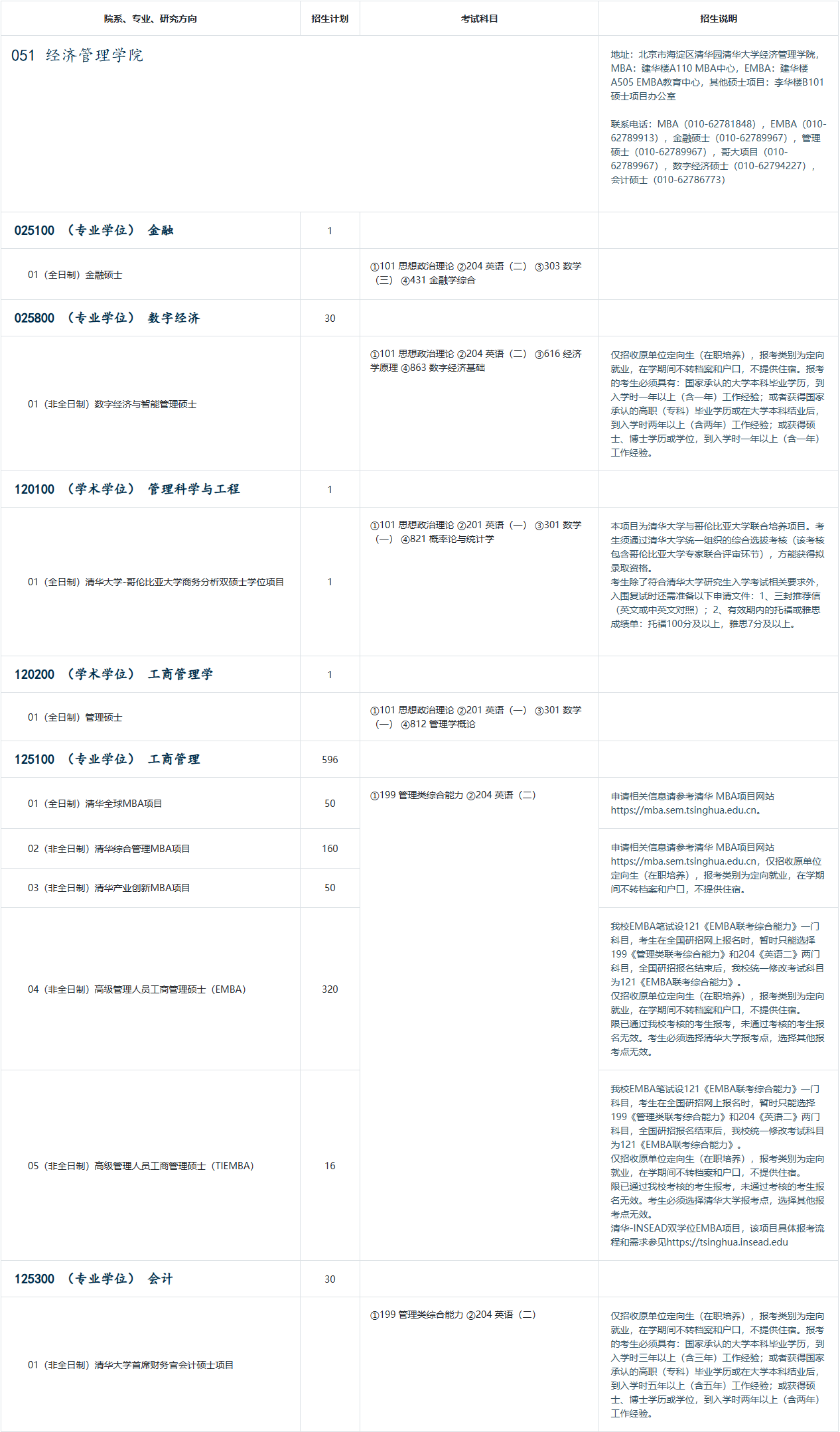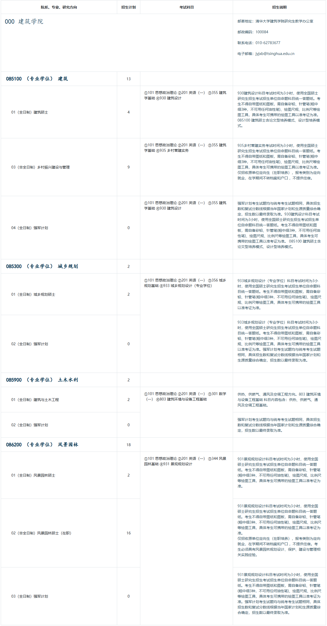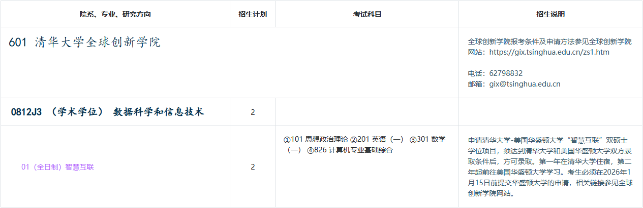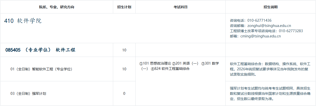 清华大学2026年硕士研究生统考招生专业目录、考试科目、招生人数