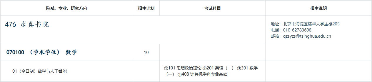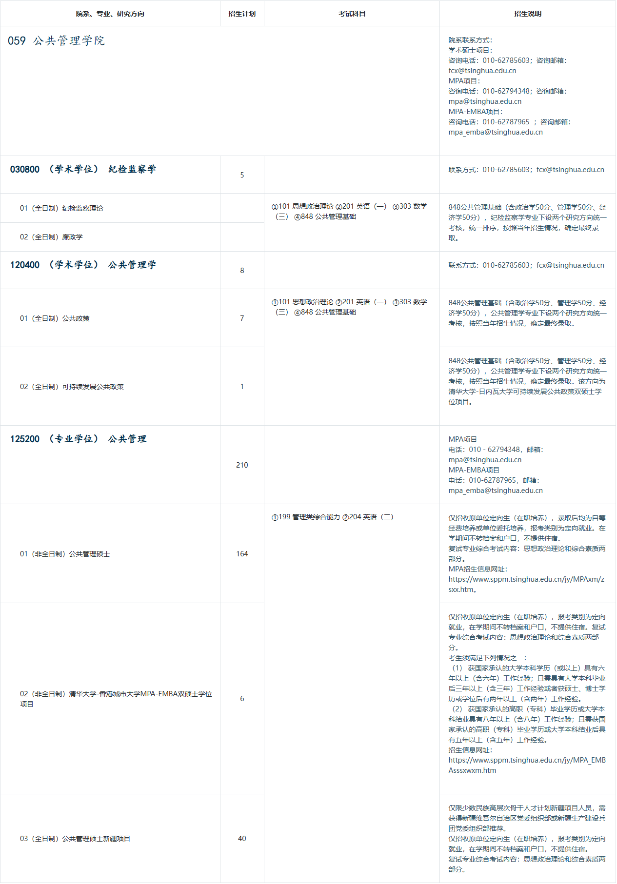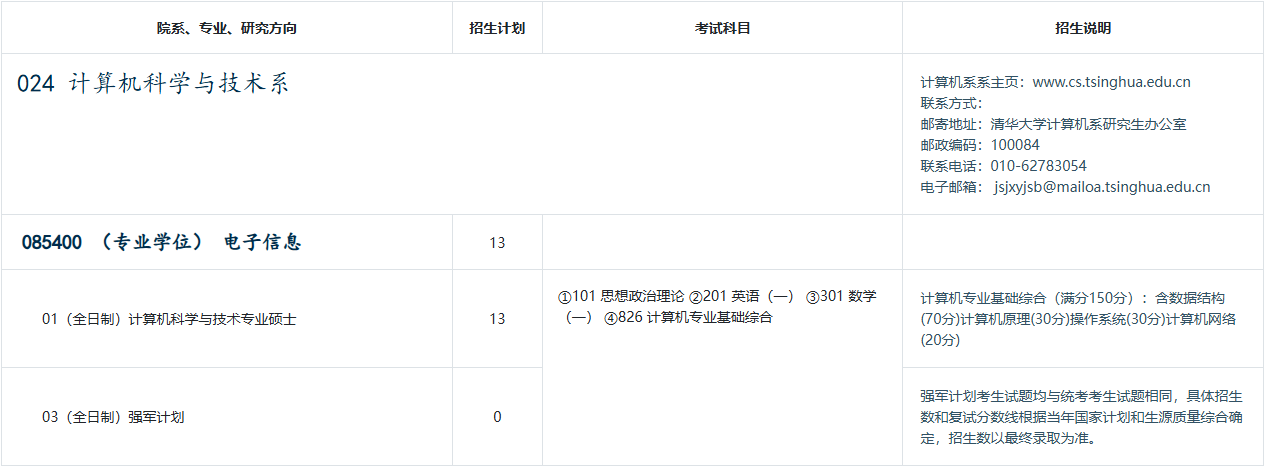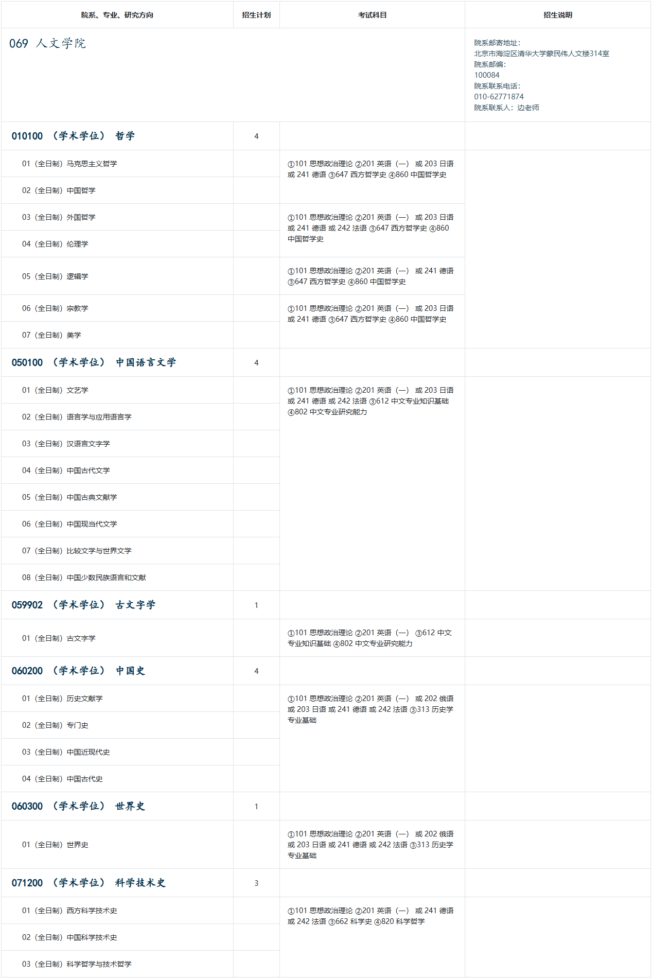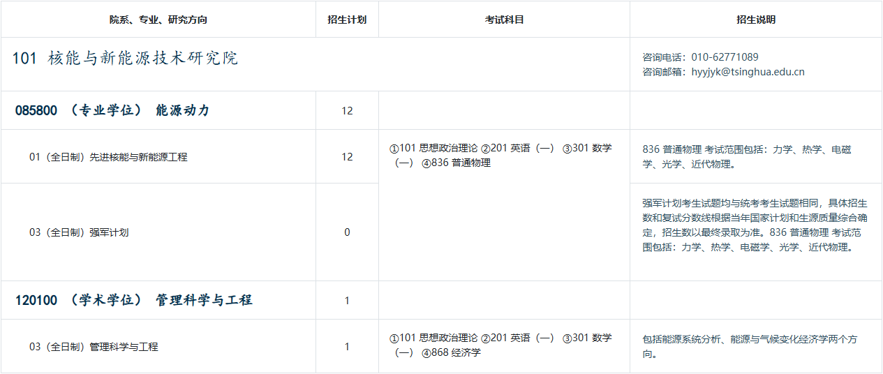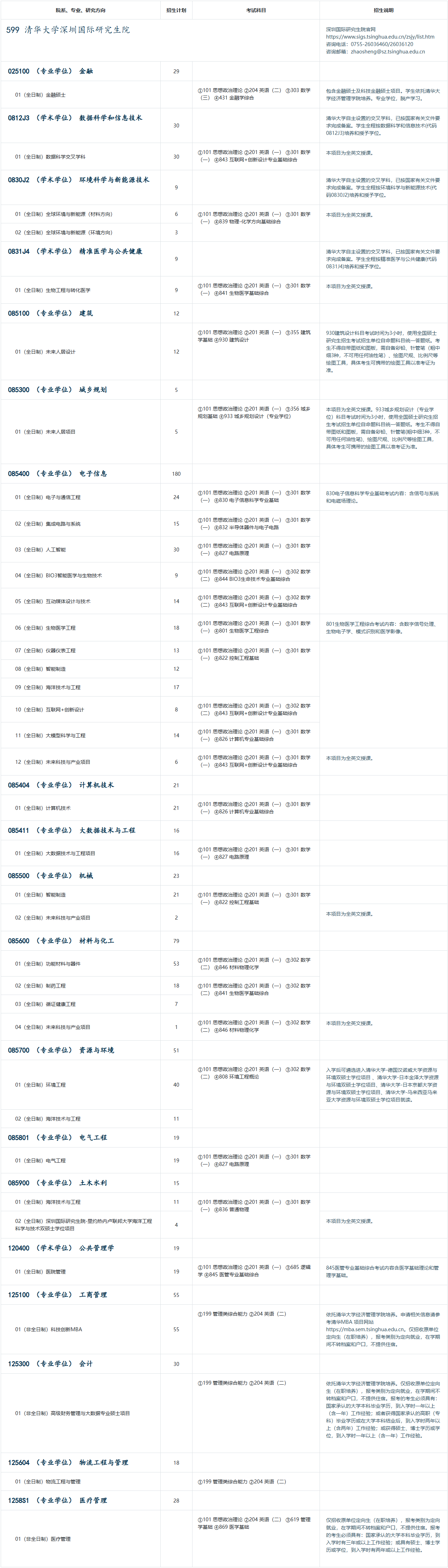 清华大学2026年硕士研究生统考招生专业目录、考试科目、招生人数