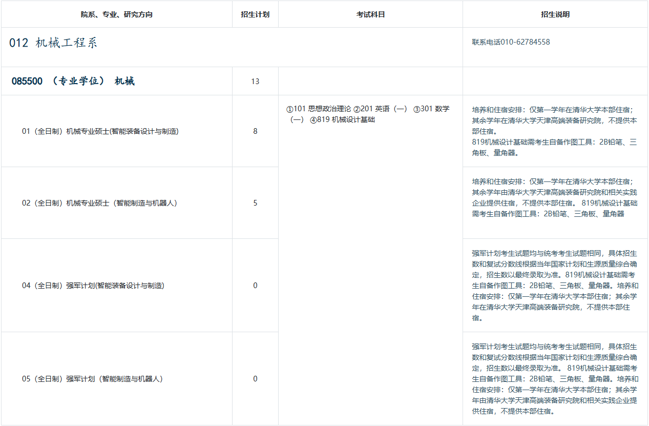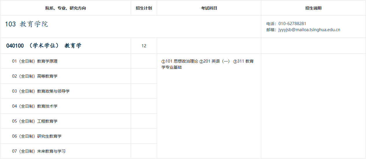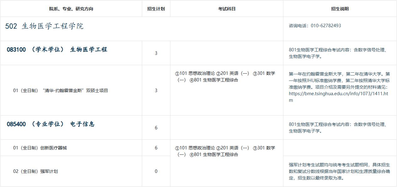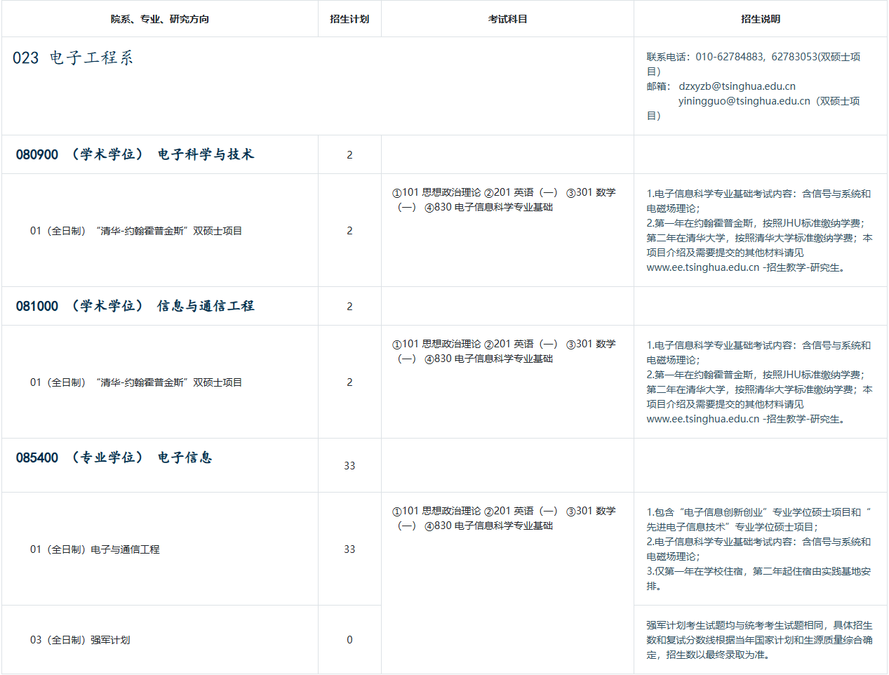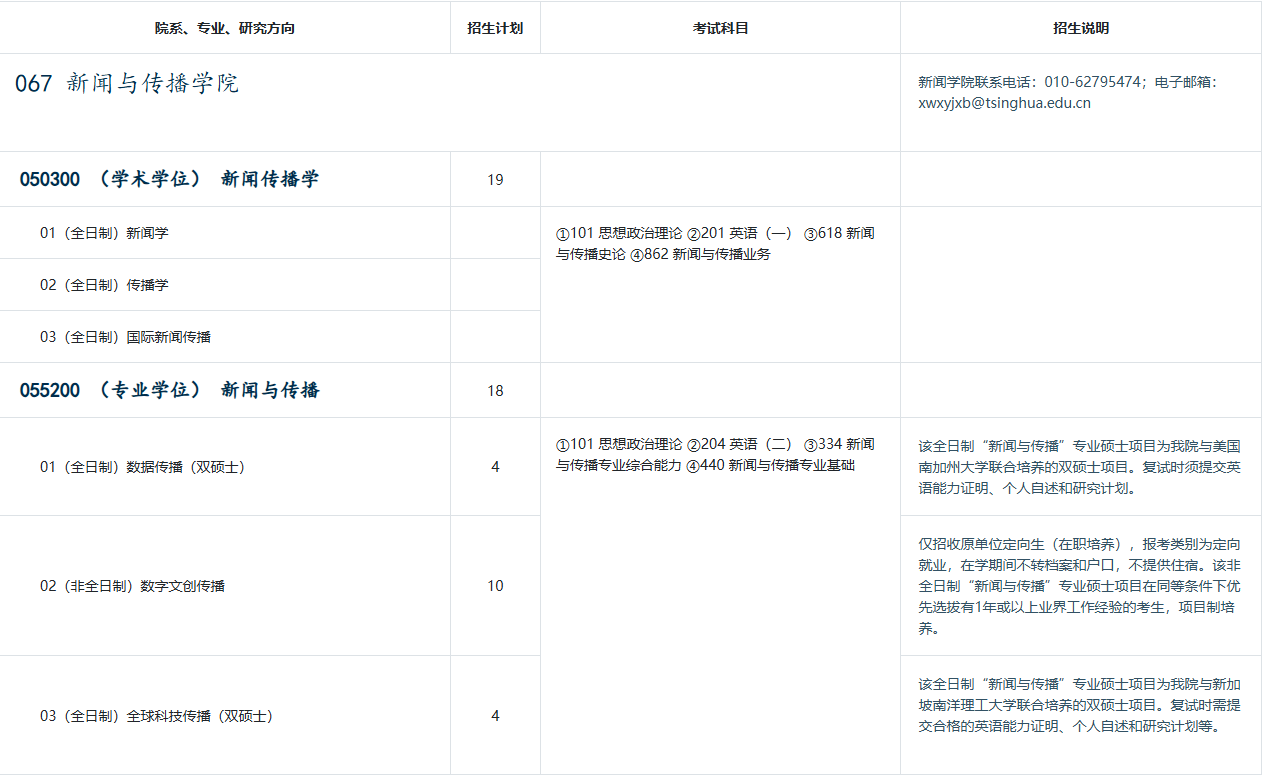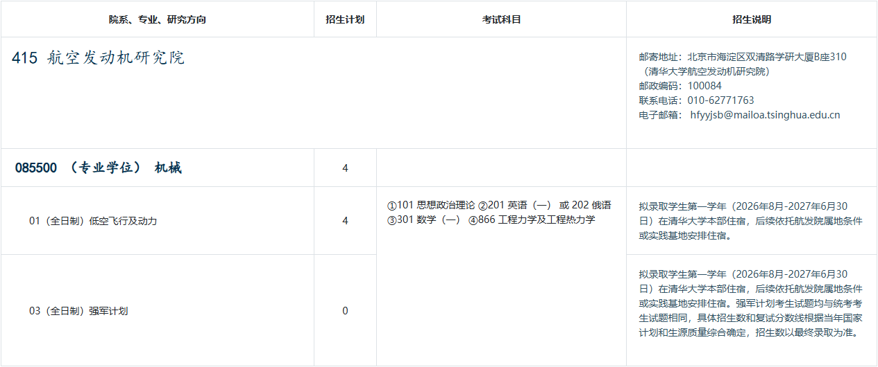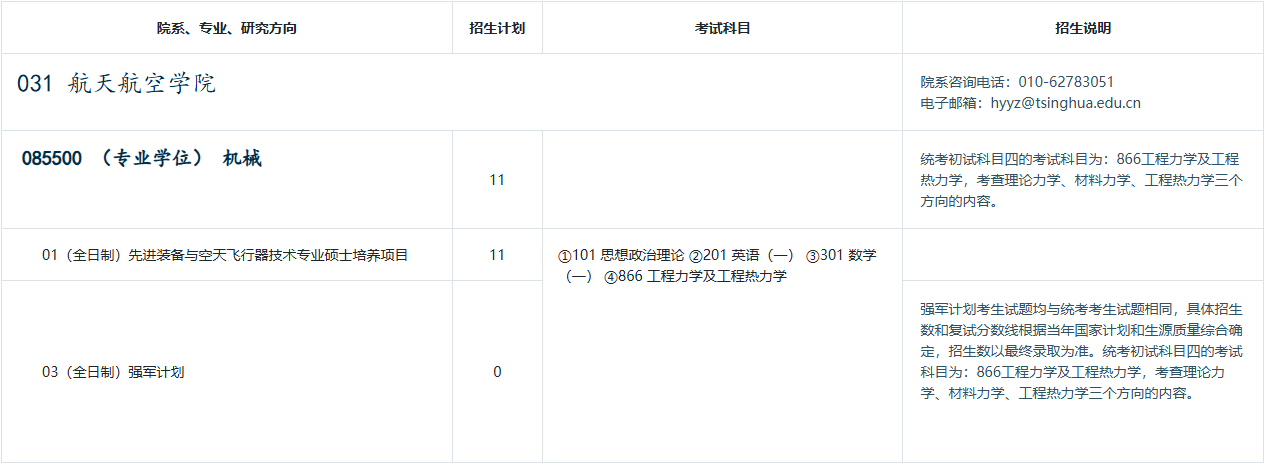 清华大学2026年硕士研究生统考招生专业目录、考试科目、招生人数