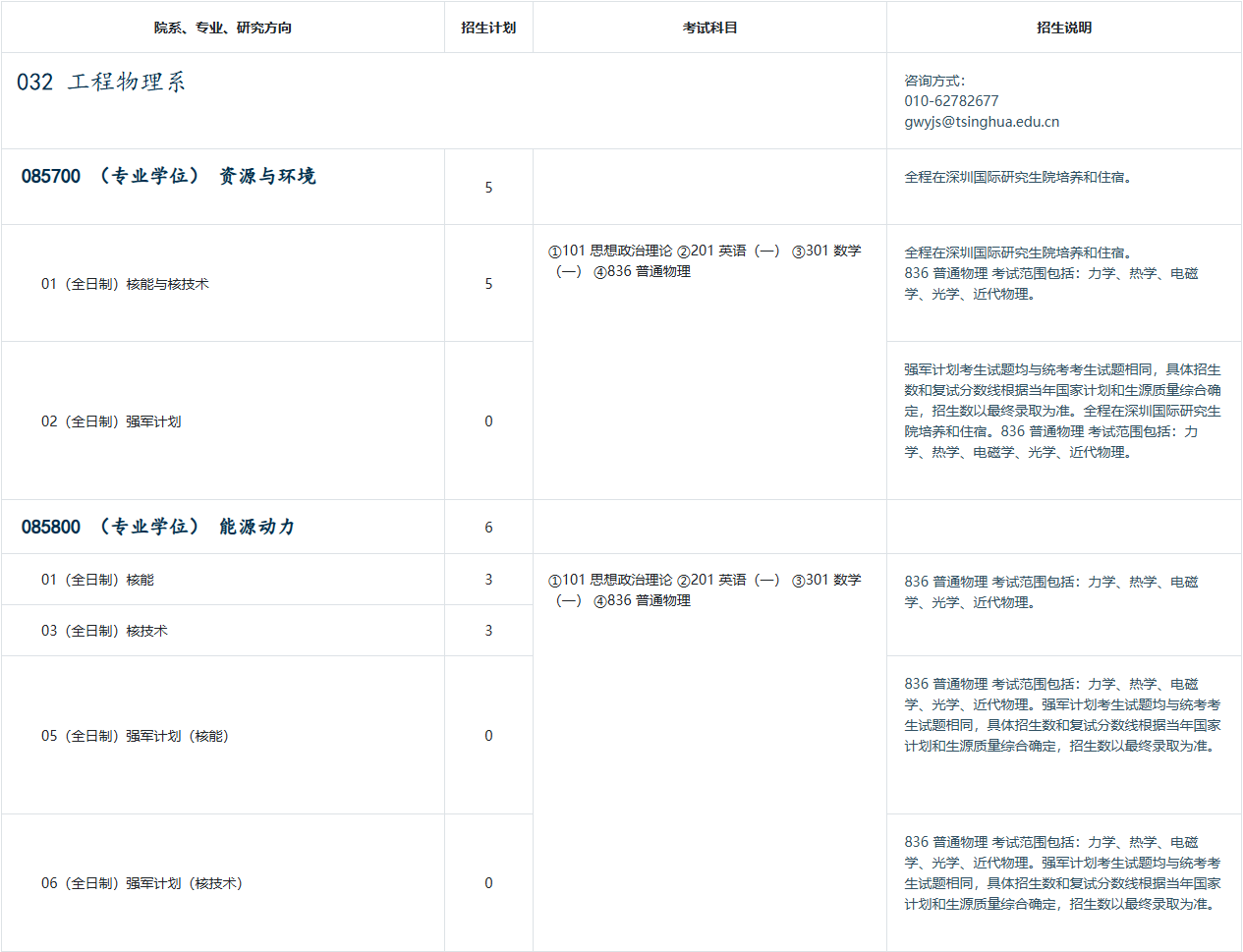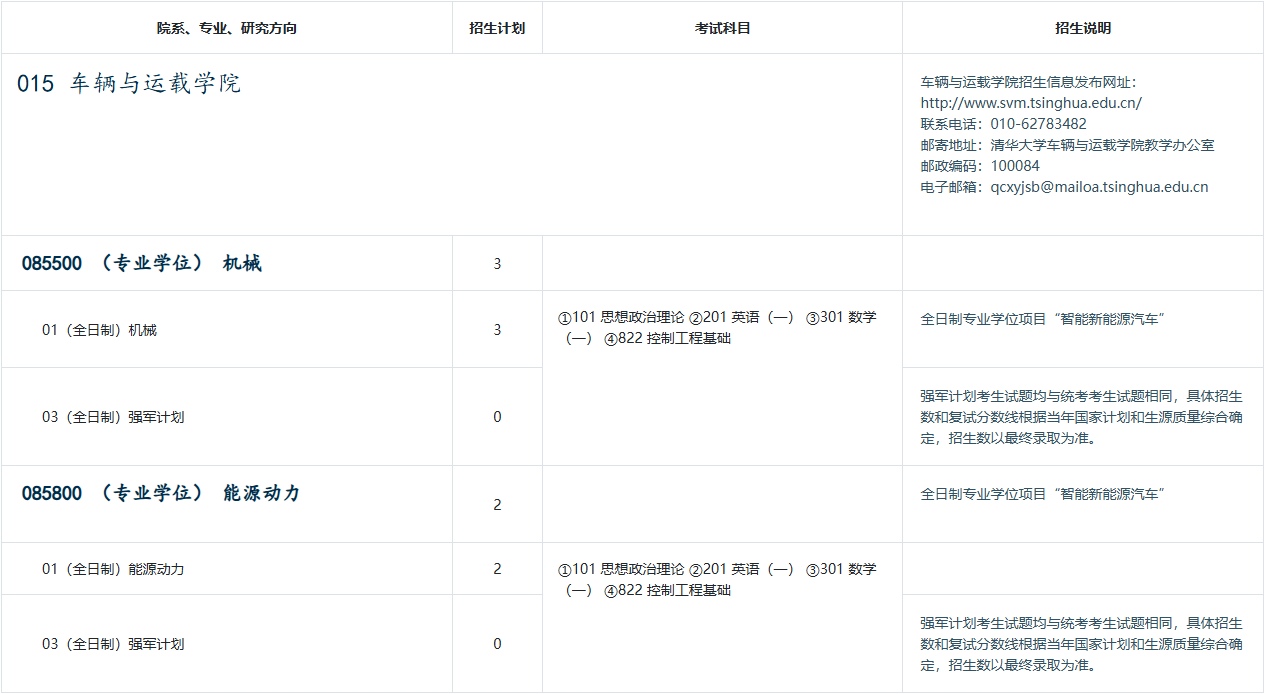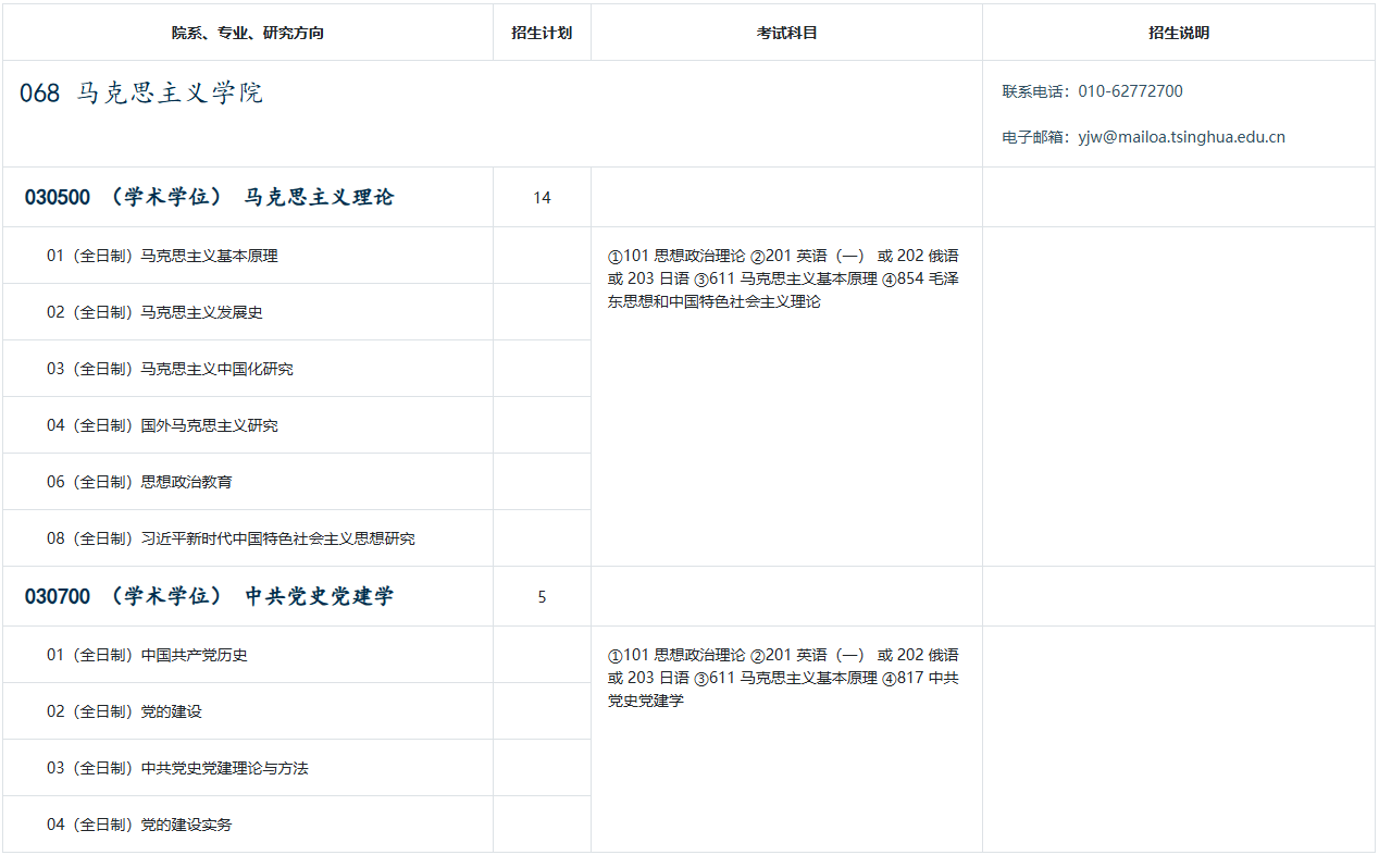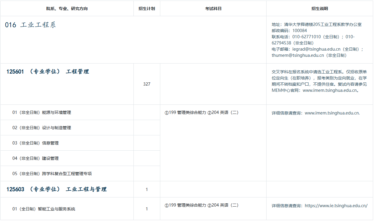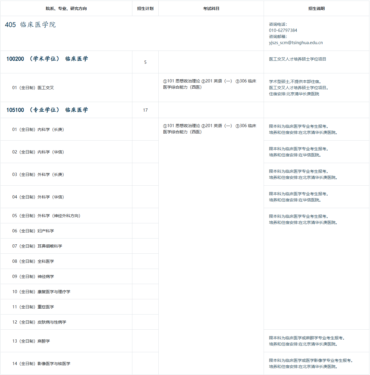 清华大学2026年硕士研究生统考招生专业目录、考试科目、招生人数