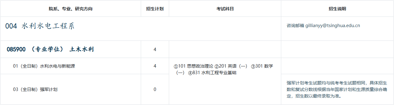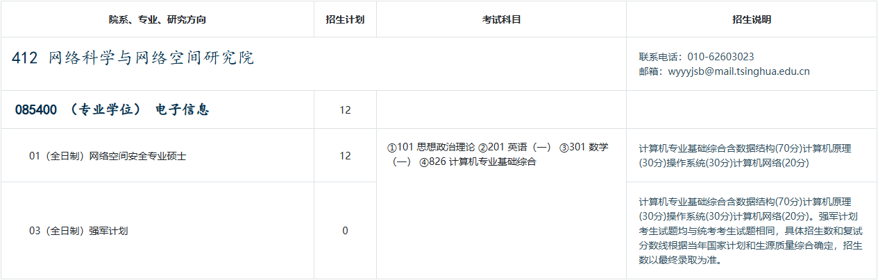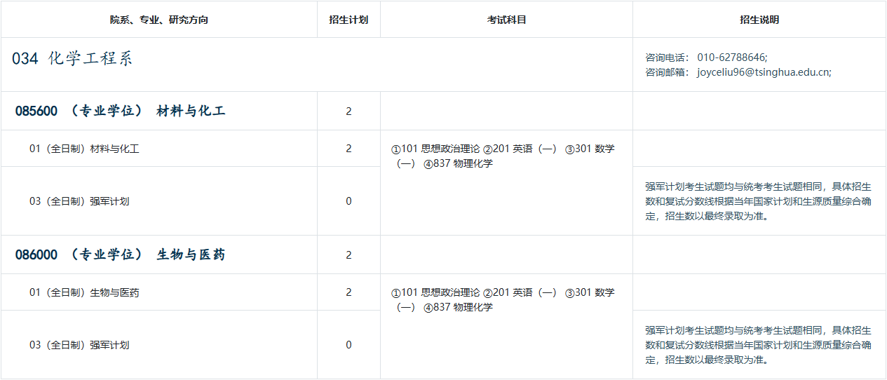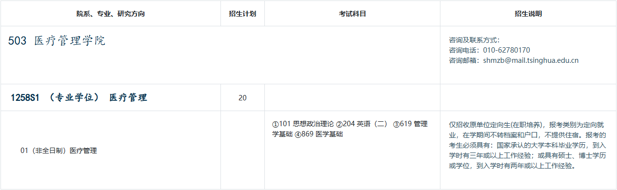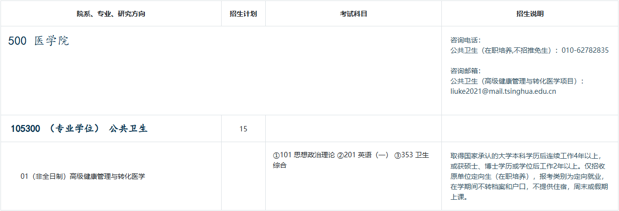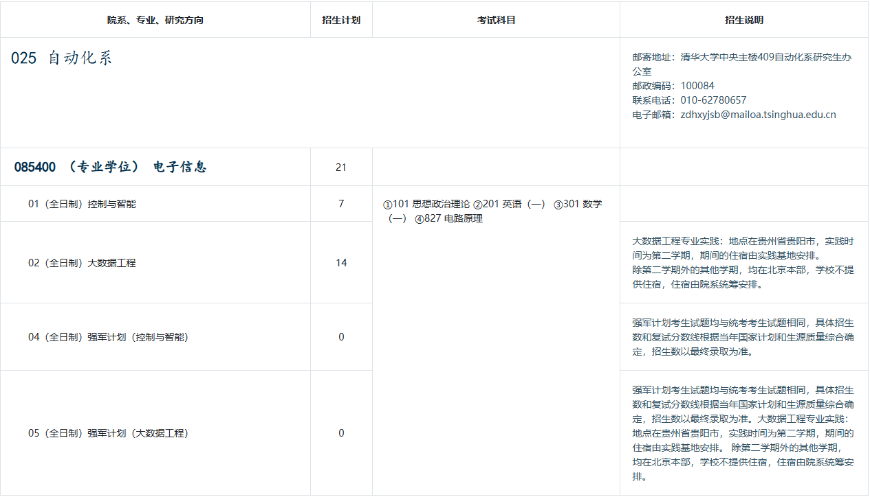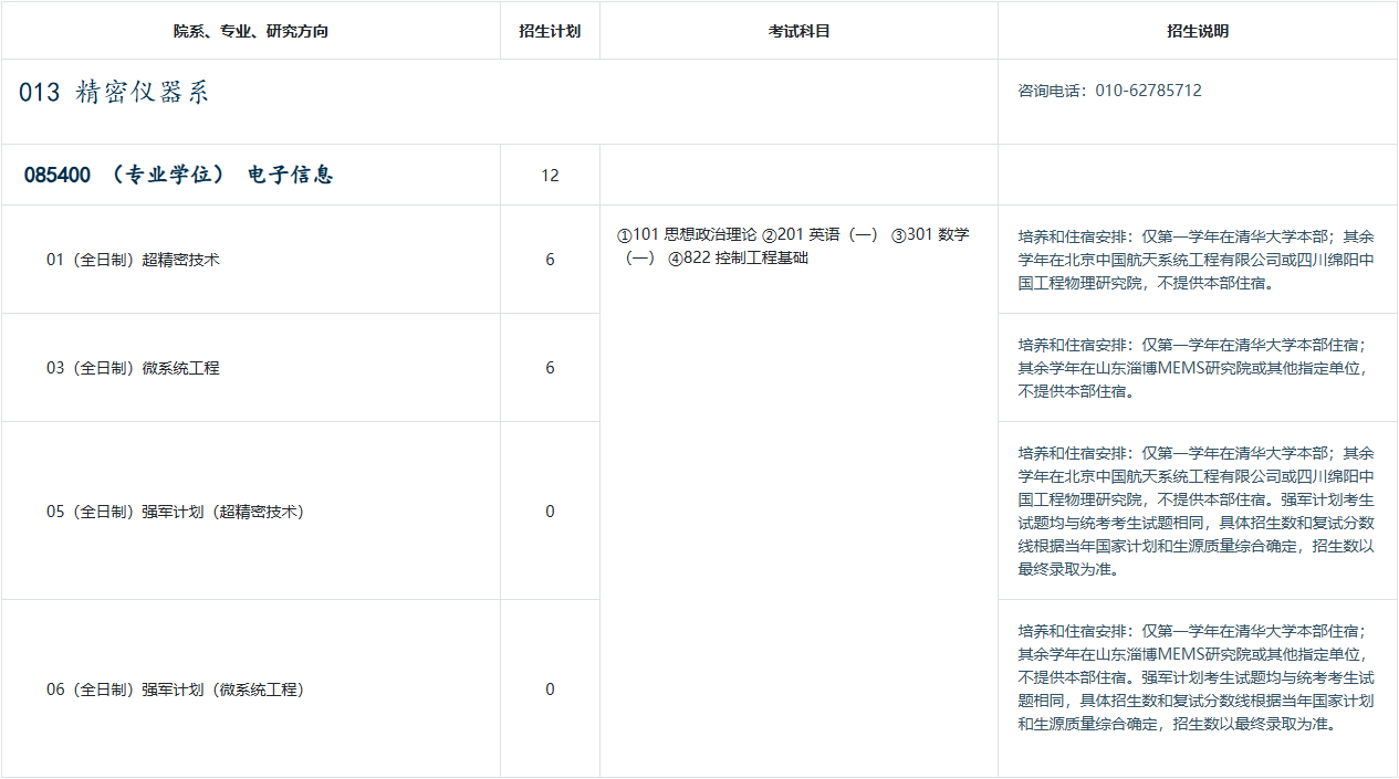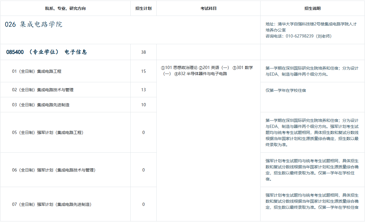 清华大学2026年硕士研究生统考招生专业目录、考试科目、招生人数