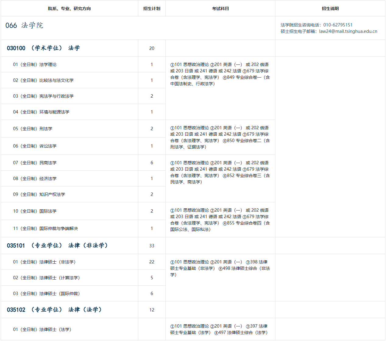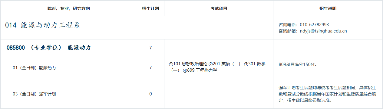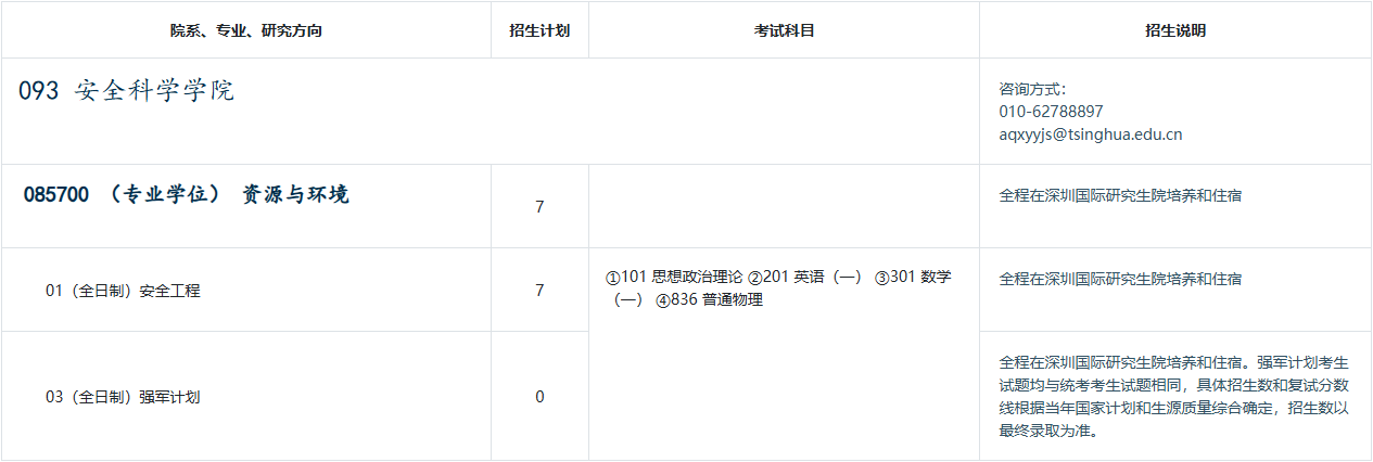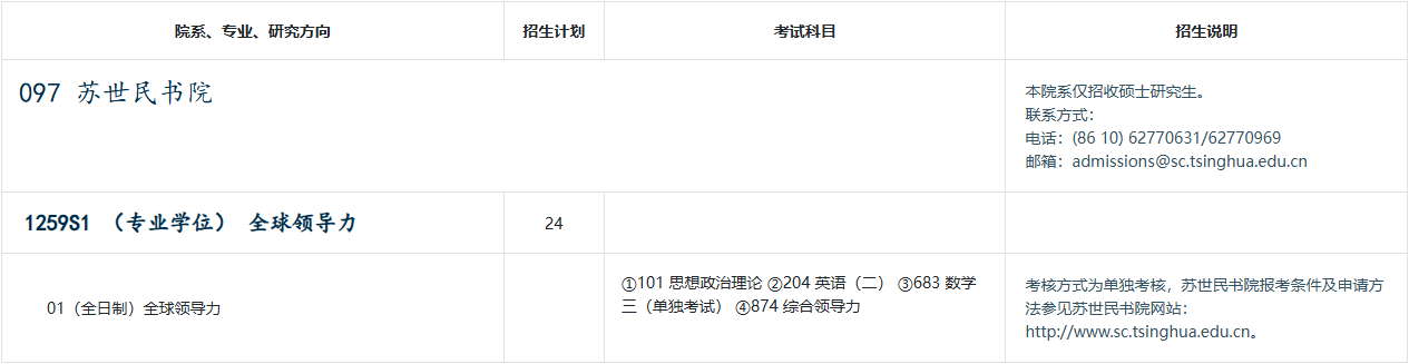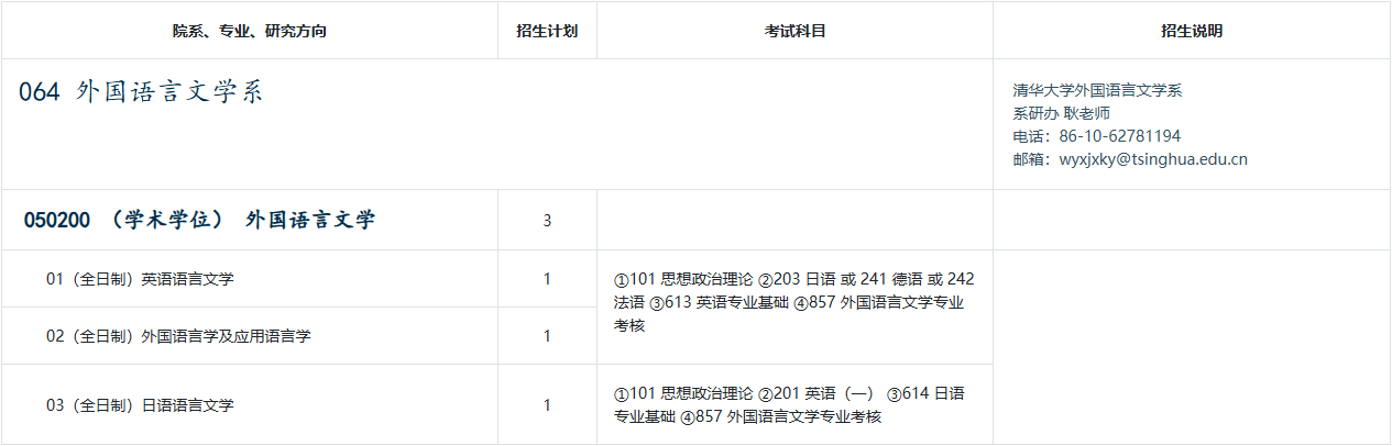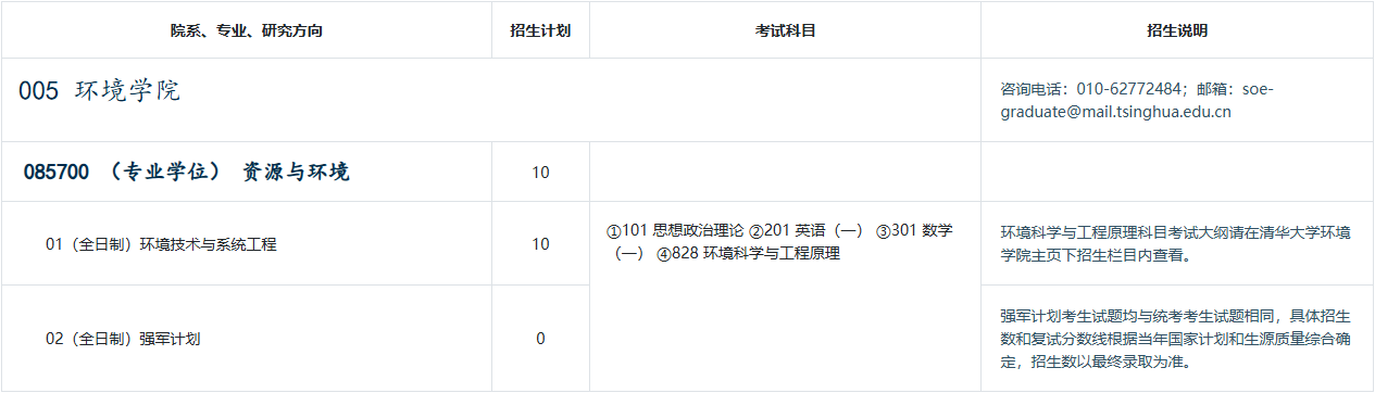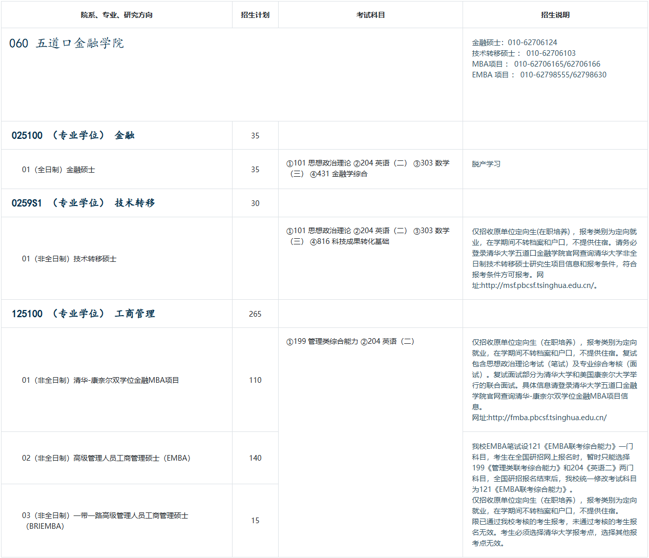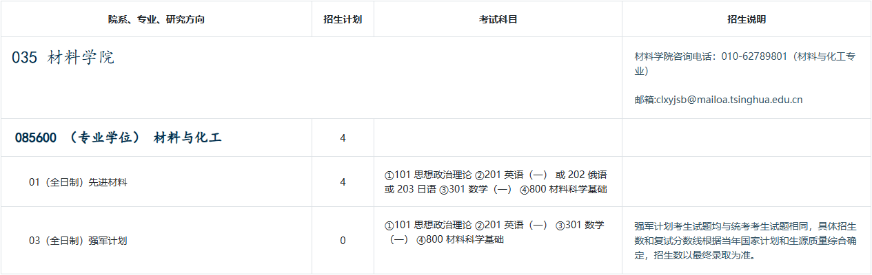 清华大学2026年硕士研究生统考招生专业目录、考试科目、招生人数