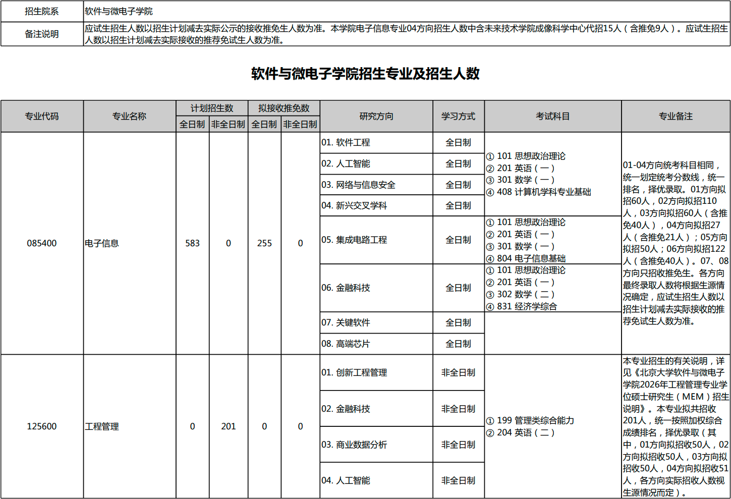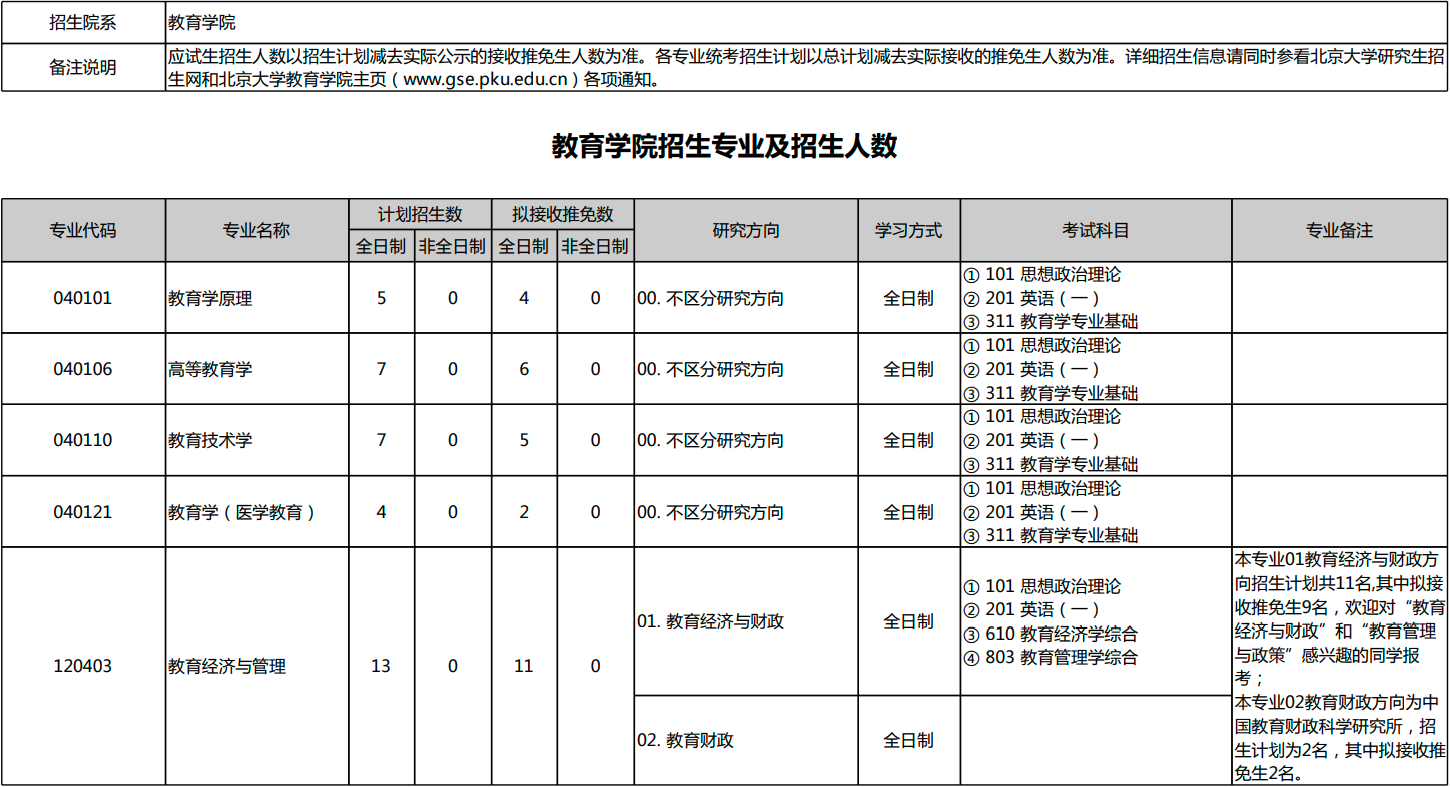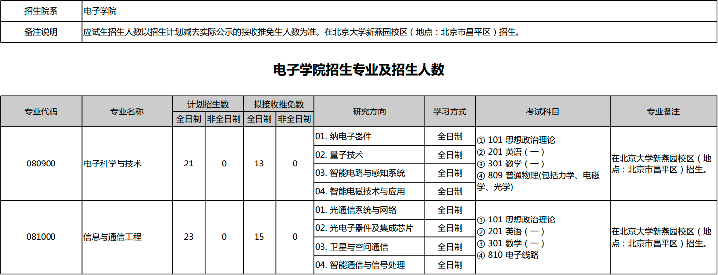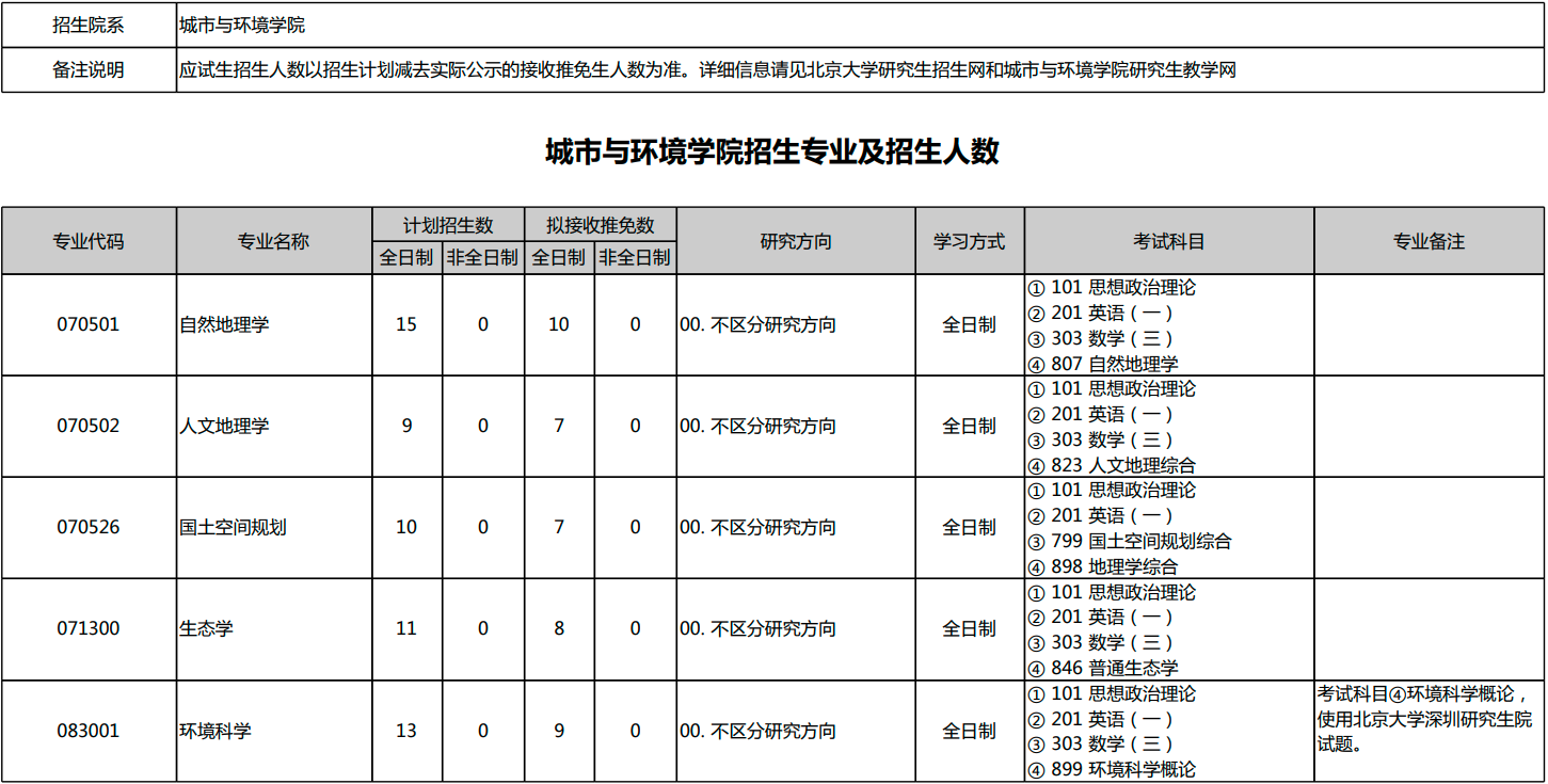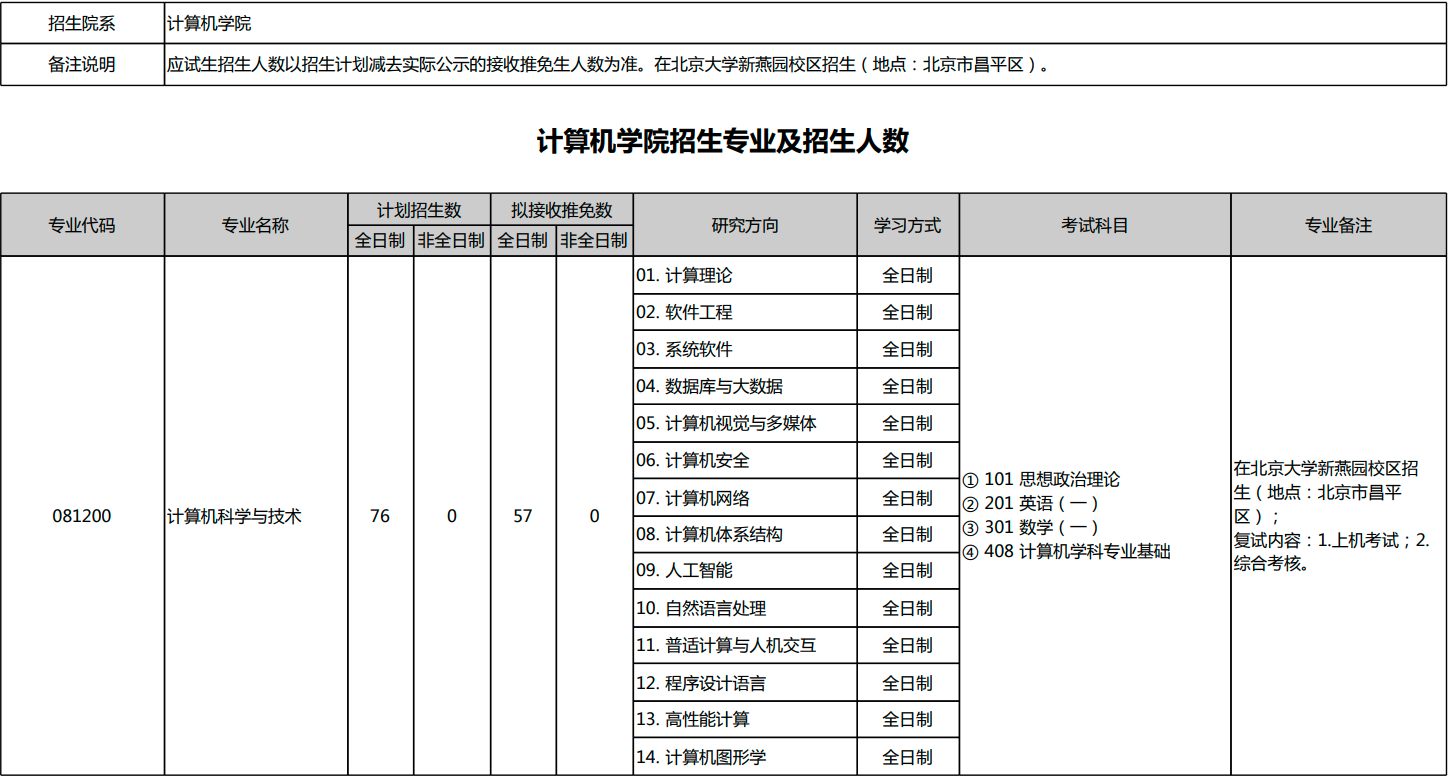 北京大学2026年考研招生专业目录、招生人数、考试科目