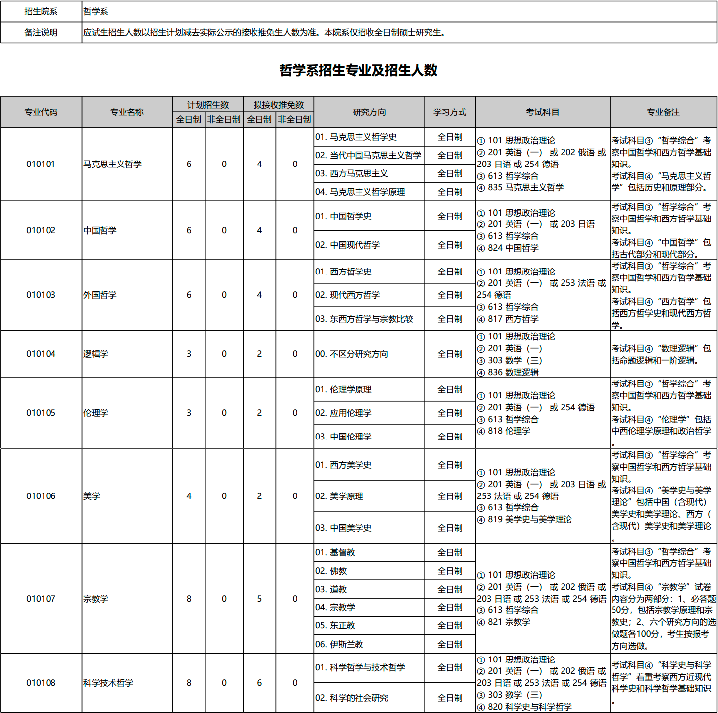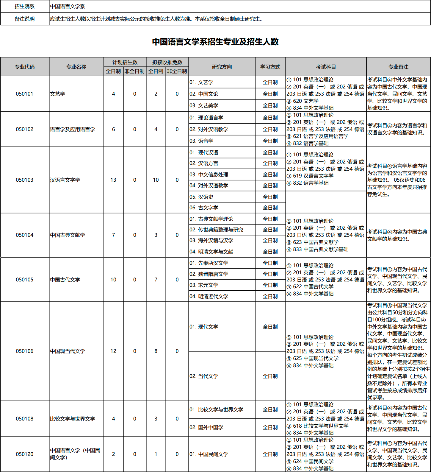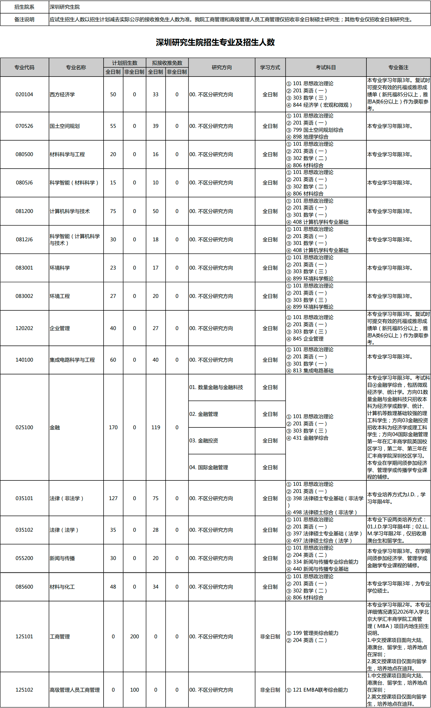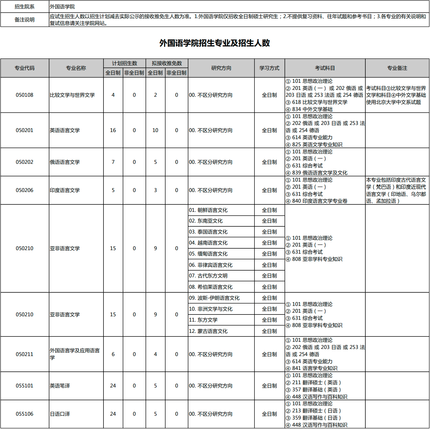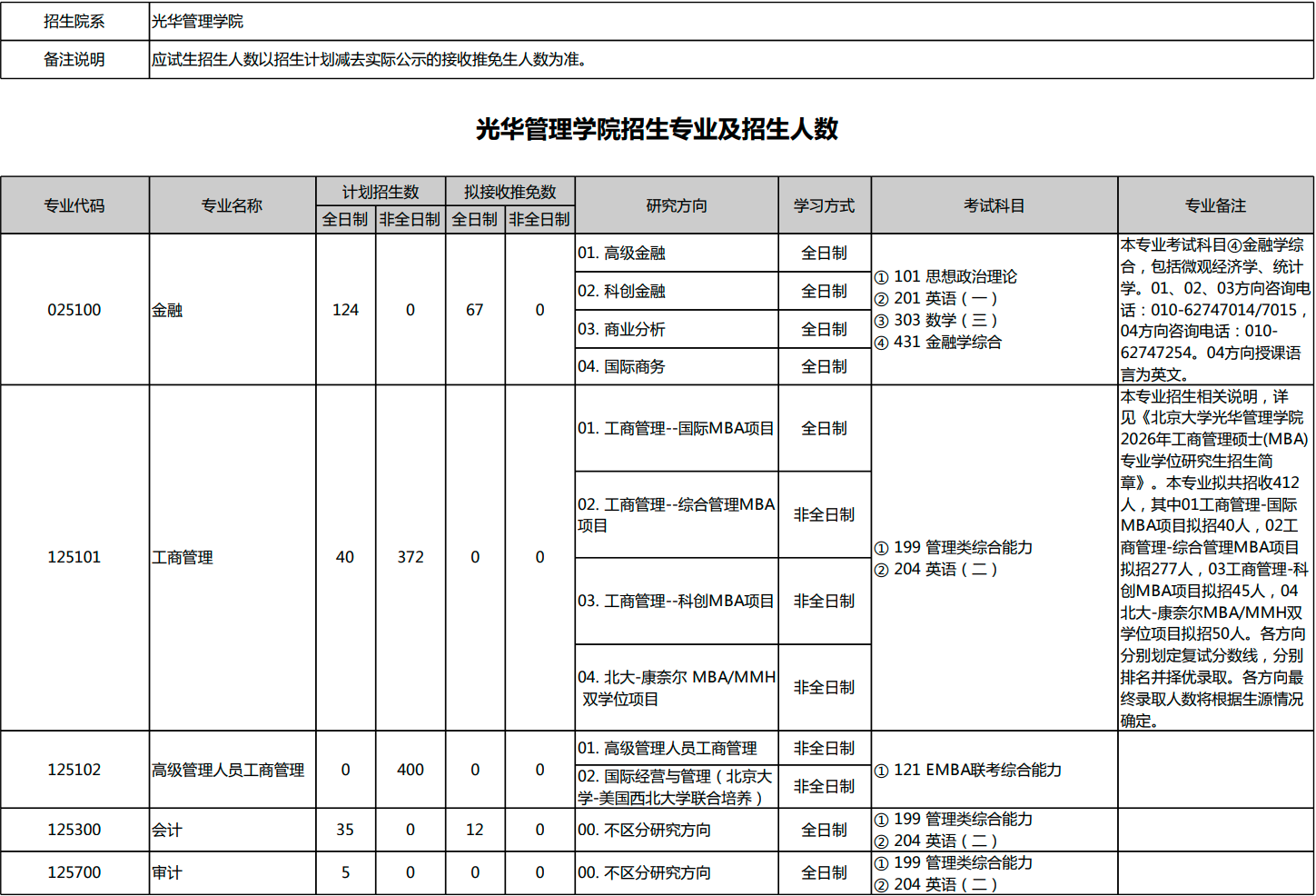 北京大学2026年考研招生专业目录、招生人数、考试科目